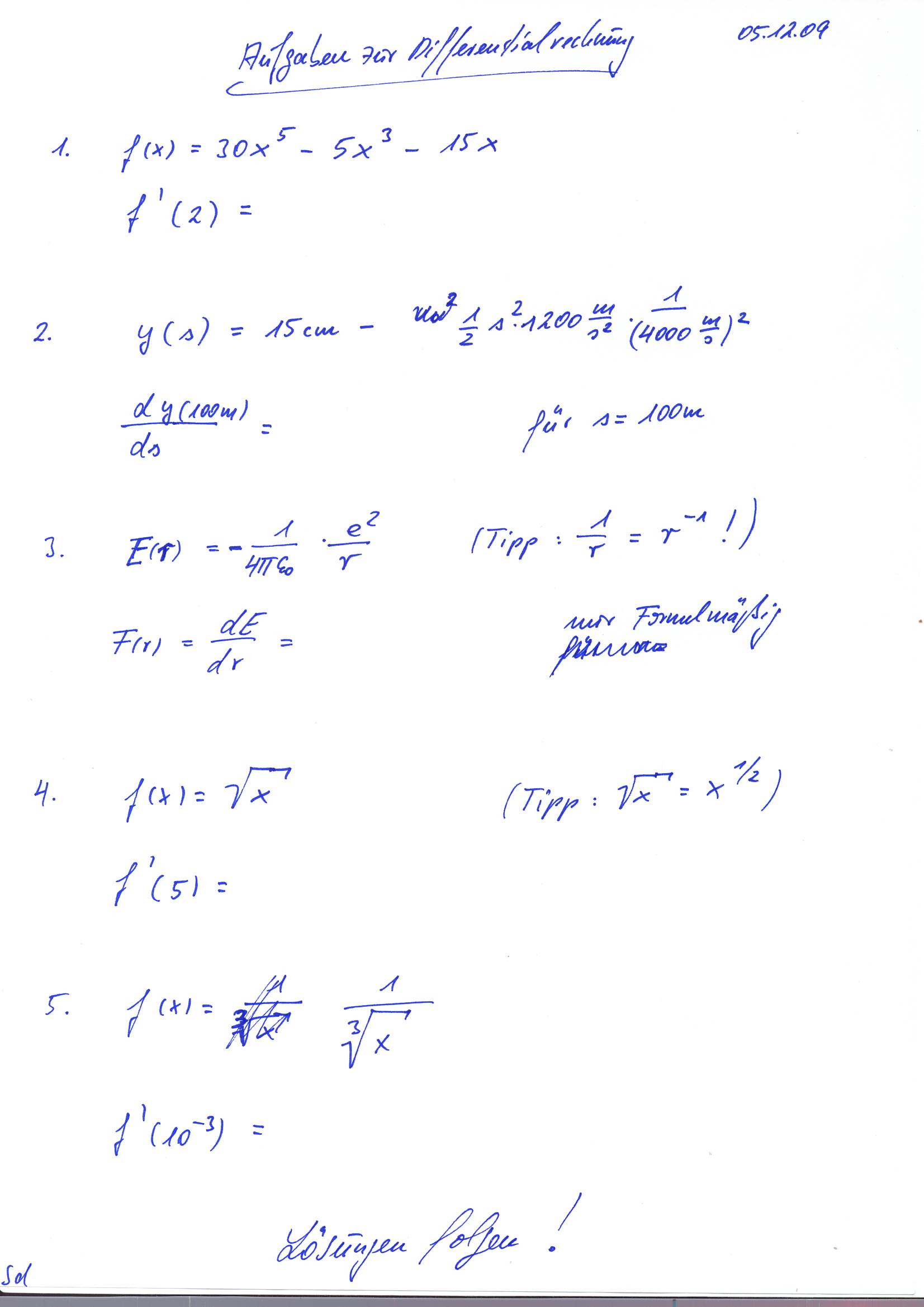 speziell für die Stufe 11 - Differentialrechnung für Anfänger (Lösungen folgen asap :-)) |