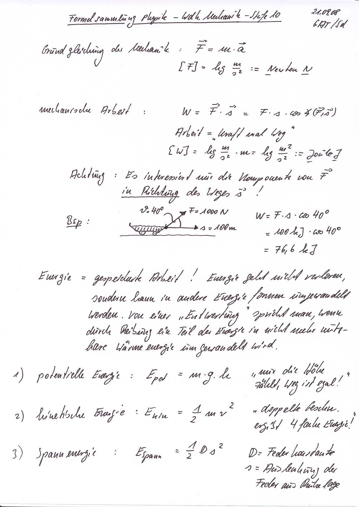 Energiebegriff und -erhaltung in der Mechanik (Stufe 10) |