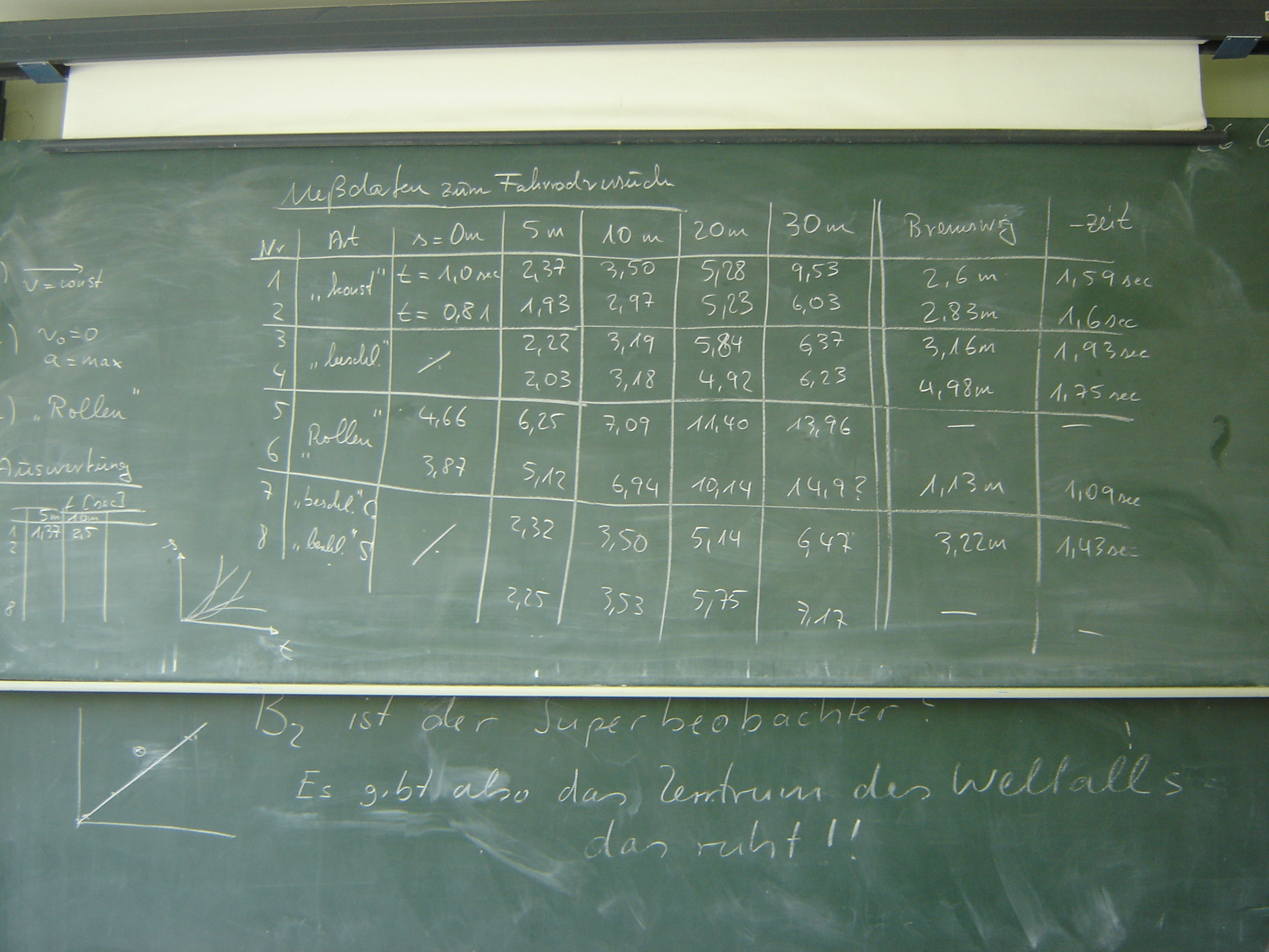 Original- Messwerte der "Fahrradmessungen" vom 26.06.2012, Klasse 8c: